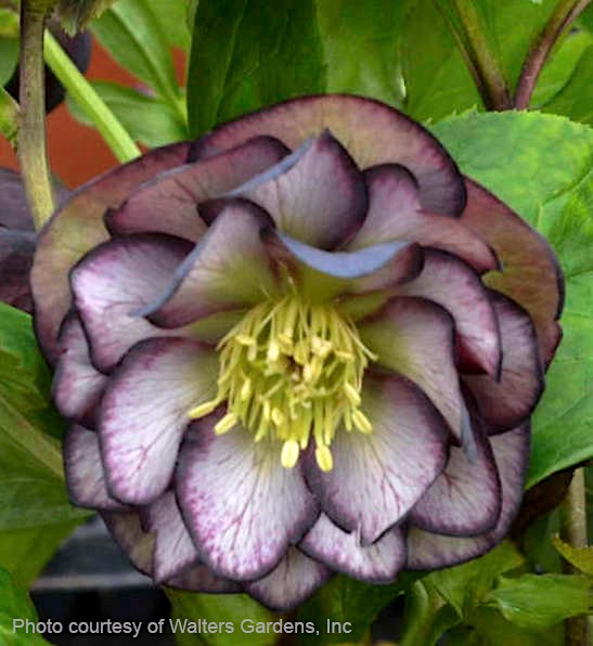 Helleborus 'Black Tie Affair' WEDDING PARTY®, known commonly as Black Tie Affair Lenten Rose is an elegant perennial of 18 to 24 inches tall and wide. Its beautiful fully-double blooms can reach 3 inches; and are cream with dark black currant edges and reverses.