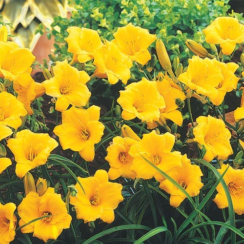 A very sweet, and highly popular daylily, Hemerocallis 'Stella d'Oro', commonly known as Stella d'Oro Daylily hosts bright gold, 2.75 inch diameter blooms, above 15” blade-like foliage. Blooming from July to October, it performs best if deadheaded. These yellow reblooming daylily flowers will last for approximately 16 hours once open. As both the flowers and foliage are fragrant, it is a perfect daylily for front of border, and edging pathways. Plant in great swaths and mix with other daylily varieties for maximum impact.