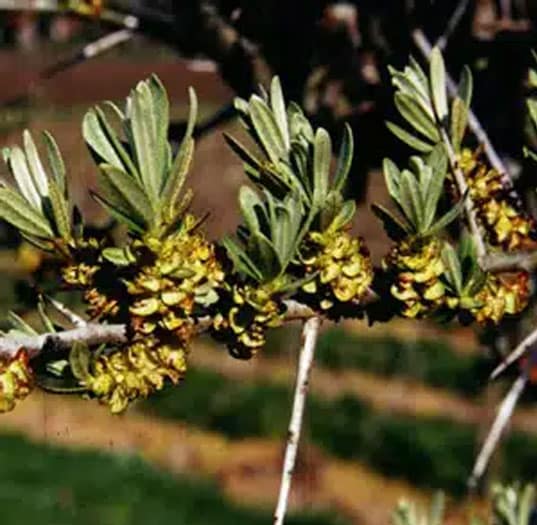 Hippophae rhamnoides 'Lord' is an early-blooming male Sea Buckthorn. It blooms for a 10 day period, which is long enough to pollinate most early-flowering female sea buckthorn varieties. Lord Male Sea Buckthorn can pollinate several surrounding female plants (typical orchards have 1 male for every 7 female plants).